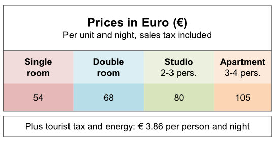 - Studios (gîtes): Basilic, Bourrache, Marjolaine, Romarin